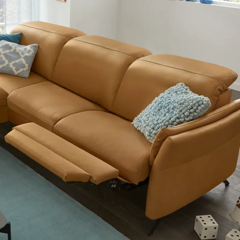Entspanntes Ausstrecken: Das motorisch verstellbare Canapé. Gegen geringen Mehrpreis.