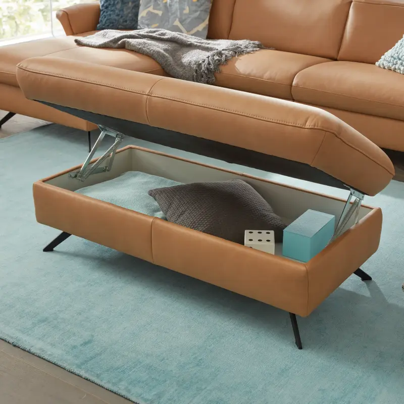 Ergänzt Ihre Wohnlandschaft perfekt: Aufklappbarer Hocker für noch mehr Stauraum. Gegen geringen Mehrpreis.