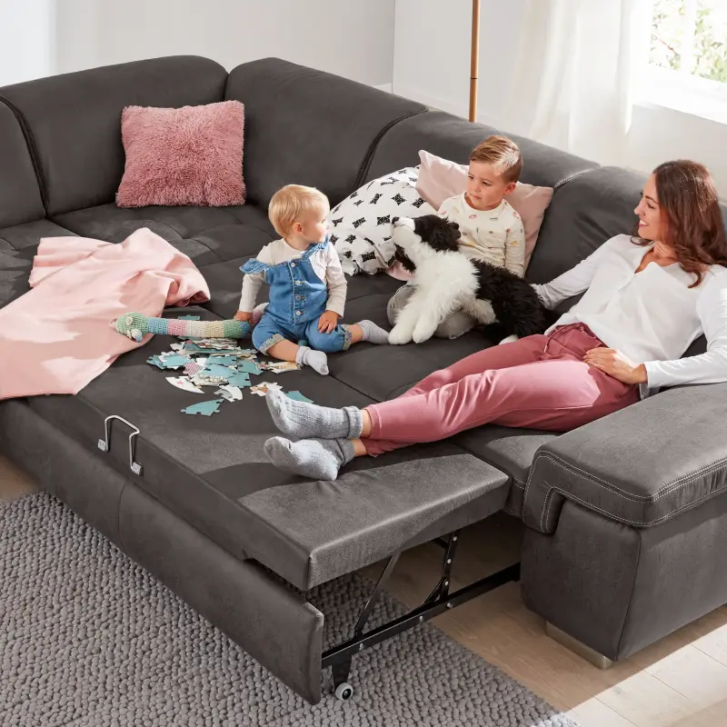 Eine große, echt bezogene Liegefläche entsteht durch die optionale Schlaffunktion. Gegen geringen Mehrpreis.