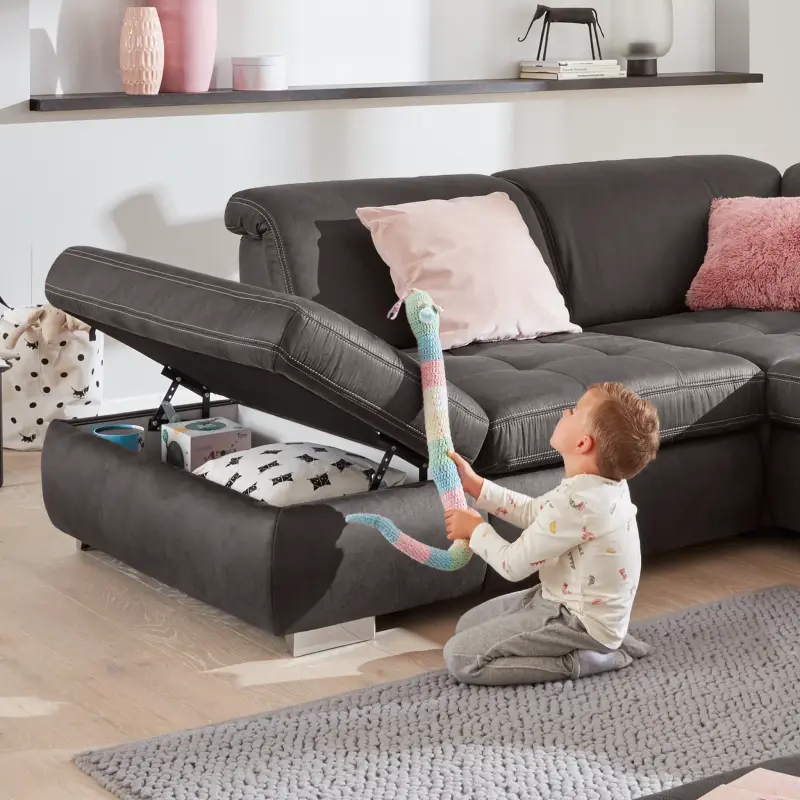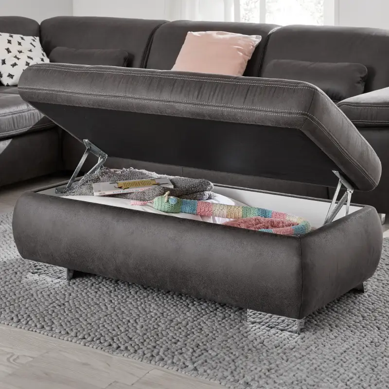 Ergänzt Ihre Wohnlandschaft perfekt: Aufklappbarer Hocker für noch mehr Stauraum. Gegen geringen Mehrpreis.
