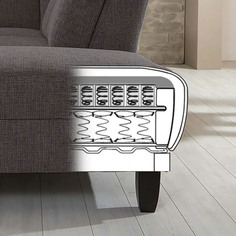 Bezug Microfaser Saddle anthrazit mit Kontrastnaht, Metallfuß glänzend und Sitzqualität Boxspring, best. aus: 1,5-Sitzer mit Anstellhocker links, inkl. Sitztiefenverstellung, Spitzecke und 3-Sitzer mit Armteil rechts, inklusive Sitztiefenverstellung. Stellmaß: ca. 260x320 cm. Gegen geringen Mehrpreis: Zierkissen, Zierdecke und Funktionen.