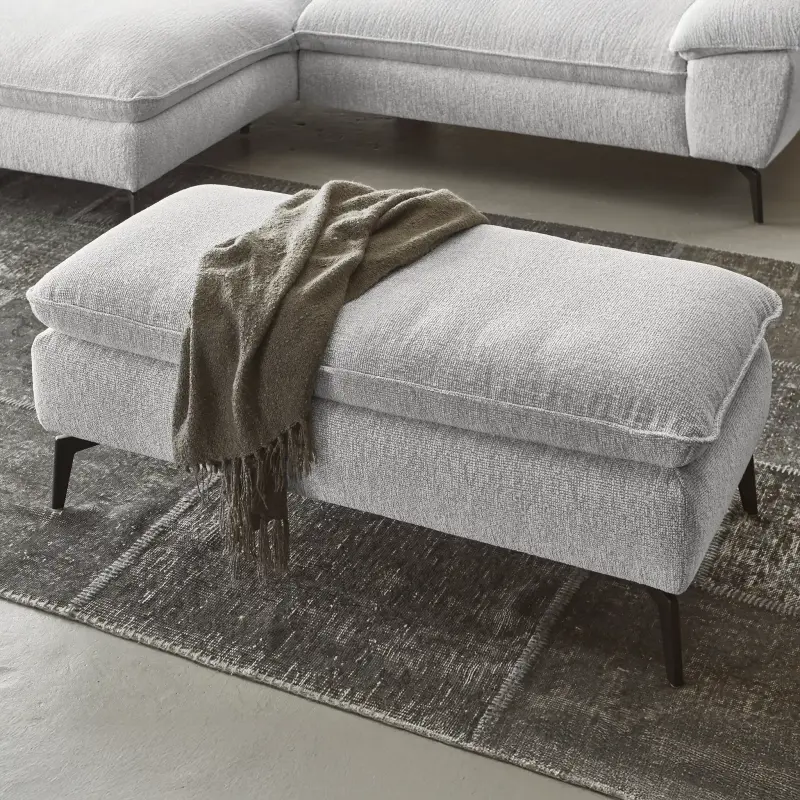 Bezug: Stoff Loft ecru, Fuß: Metallfuß schwarz, best. aus: Canapé gerade XL mit Armteil links und 1,5-Sitzer XXL mit Armteil rechts. Maße: Stellmaß ca. 197x297cm. Gegen geringen Mehrpreis: Zierkissen.
