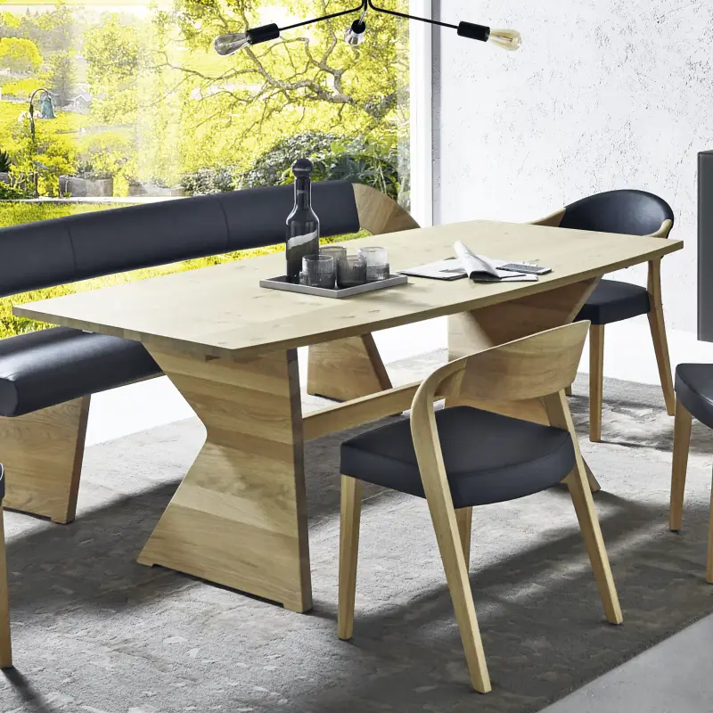 in Wildeiche geölt. Maße: ca. 100x200 cm | Tischhöhe ca. 76,5 cm. Gegen geringen Mehrpreis: Tischverlängerung.