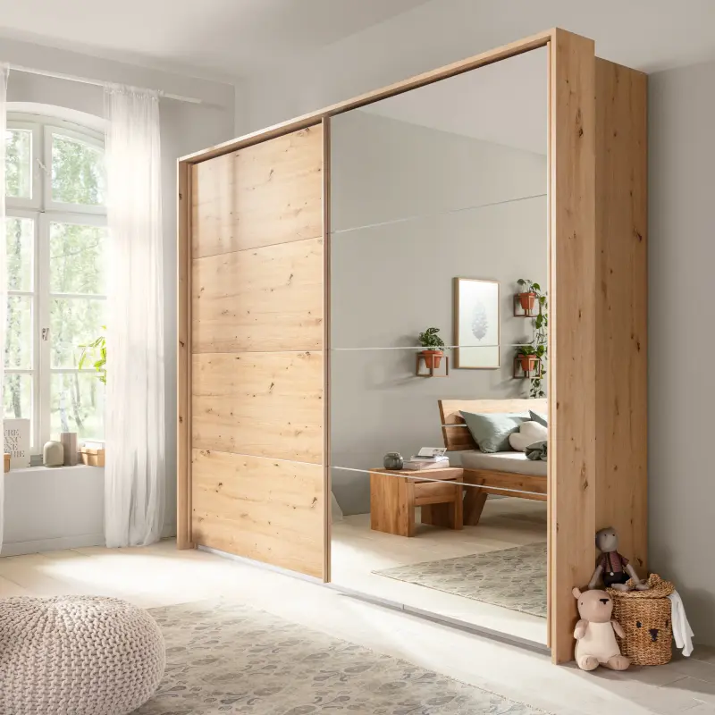 2-türig, in Eiche Artisan Nachbildung mit Spiegel, inklusive Passepartout. Maße: B/H/T ca. 271x229x62 cm.
